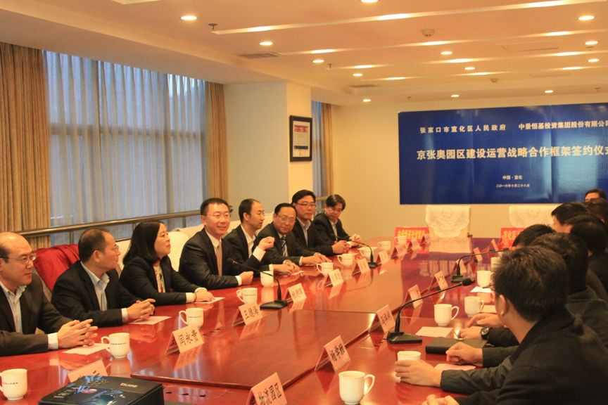 持续酝酿策划近一年的张家口市宣化区项目,于2016年10月28日取得重大进展。宣化区区委副书记、区长费再宏,球王会平台董事长兼首席执行官肖厚忠代表双方正式签署了京张奥园区建设运营战略合作框架协议。
