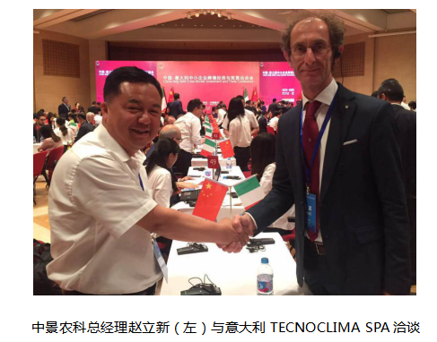 在“一带一路”国际合作高峰论坛召开期间,中国银行日前在京成功举办“中国—意大利中小企业跨境投资与贸易合作洽谈会”(以下简称“洽谈会”),球王会平台旗下江苏中景恒基农业科技发展有限公司(以下简称“中景农科公司”)受邀参与此次洽谈会。