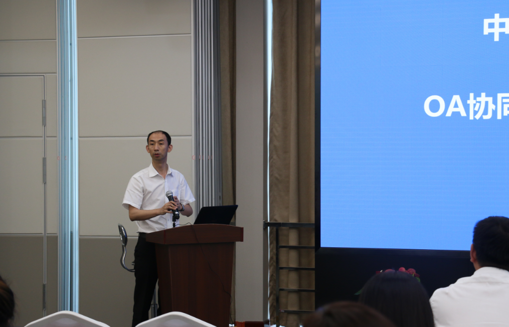 集团OA系统建设实施方泛微公司项目经理彭震详细介绍了OA系统功能,并演示了OA系统有关流程。从新用户注册、授权及登录,到电子公文录入、审批流程等都一一作出视频演示和现场解答。经过授课人的现场讲解,全体员工也充分感受到了相较于传统办公,OA办公平台所具有的高效性、实用性。