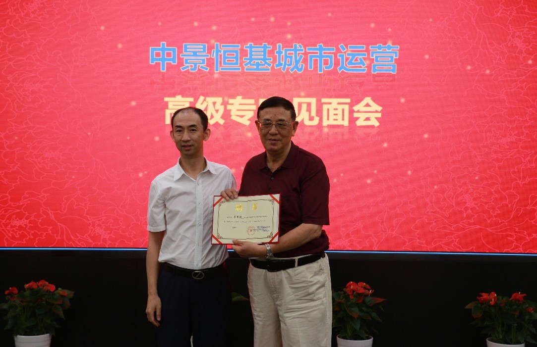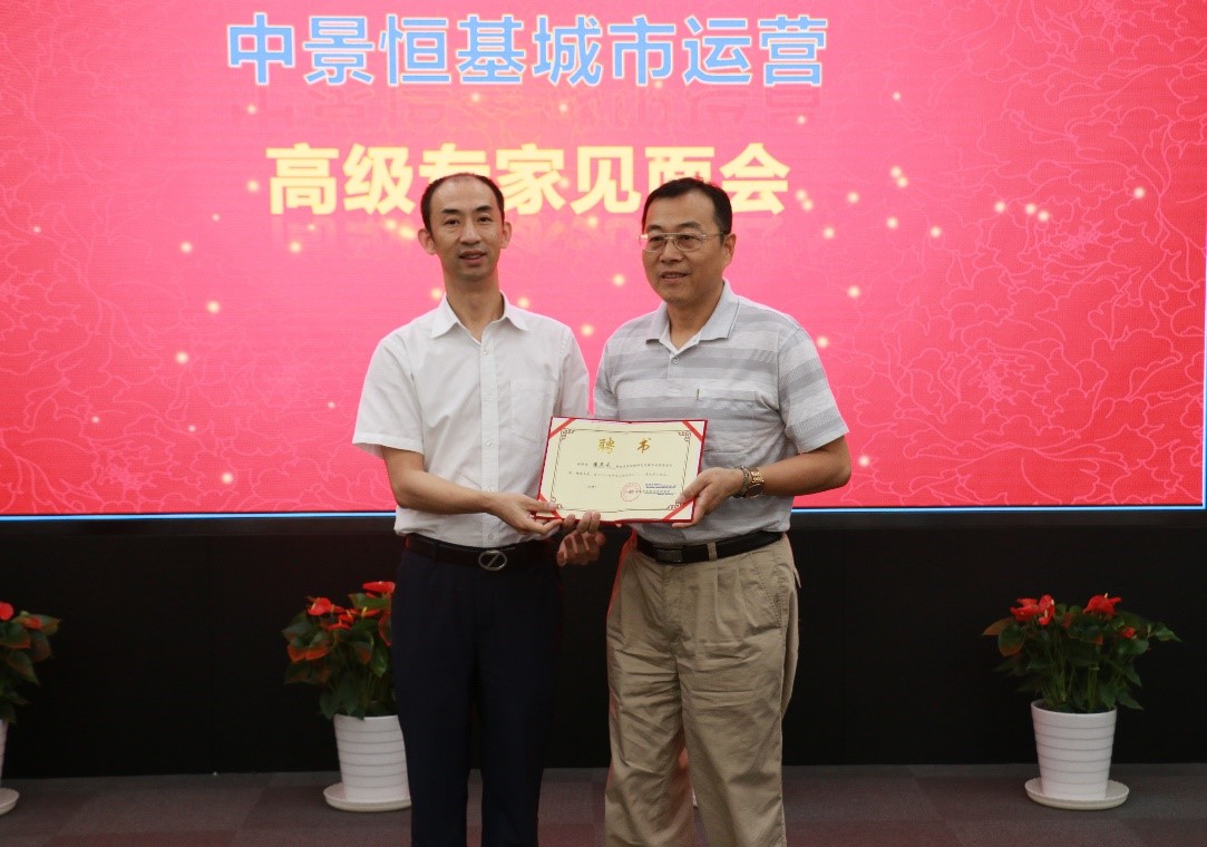 2017年9月9日,中景恒基城市运营高级专家见面会在集团三层大会议室召开。本次活动共有六名在宏观经济、金融、城市规划和现代农业领域深耕多年的资深专业人士莅临现场,从总裁张睿手中接过聘书,成为中景恒基城市研究院首批聘任的高级专家。这标志这中景恒基集团的城市运营架构中的智库部分更加充实,体现了中景恒基作为城市运营商的软实力得到了进一步加强。