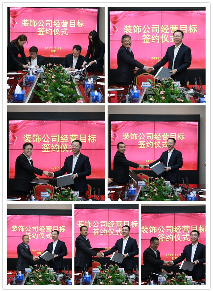 2017年12月19日,中景装饰公司经营目标签约仪式在集团视频会议室召开,肖厚忠董事长率领集团领导、中景装饰公司经营目标责任人及各部门负责人参加了此次会议。会议聚焦“创新引领新发展,二次创业构新景”的主题,这不仅仅是一次经营目标签约仪式,更是新常态背景下一次战场集结和沙场点兵,立足当下,展望2018年以及更远大的未来,运筹帷幄、决胜千里。