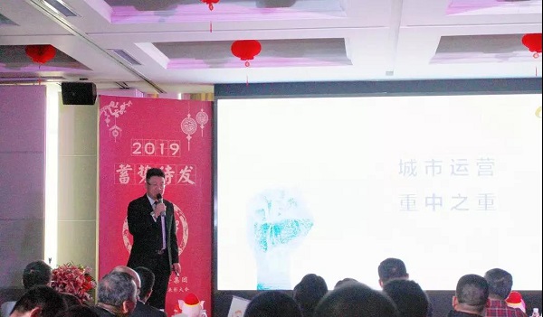 大会伊始,集团首先对2018年的工作情况进行了总结,并对2019年的工作进行了相关部署。年终总结公布了去年的经营成果,分析了集团在这一年发展中存在的问题。同时,年终总结针对城市研究、城市金融、城市营造、城市产业、城市服务五大板块的重大突破和主要业绩进行了展示。此外,还对财务、企管等职能部门的工作进行了评述。总结中讲道:“2019年,我们依旧会面对经济形势下行的考验,对于企业乃至祖国来说,都需要在危机共存的变局中寻找突破。如何因事而立,加快产业升级,把握机遇,是每个企业必经的课题。”随后,集团在19年工作部署中指出,将把“三海一支撑”战略完成落地,继而向着成为“值得信赖和受人尊敬的在国内具有影响力的一流城市运营商”的目标继续前进;提出大力建设“城市运营研究院”,“装饰设计院”等智库机构;提出闭合园区运营模式;继续推进股权类项目融资等战略目标,并对日常经营提出了要求。
