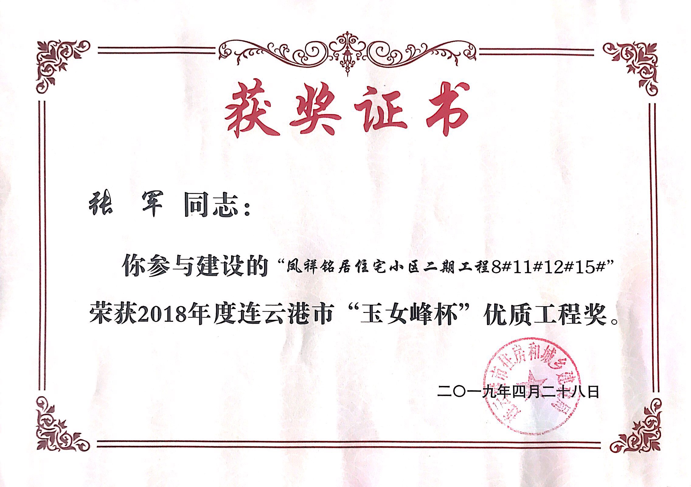 本次玉女峰杯的获得又一次体现了连云港市凤祥铭居房地产开发有限公司一直以来深耕港城地产行业的决心和凤祥铭居人对工程质量精益求精的优良传统。凤祥铭居公司会以此次获奖为契机,不忘初心,为港城人民呈现更多精品工程。